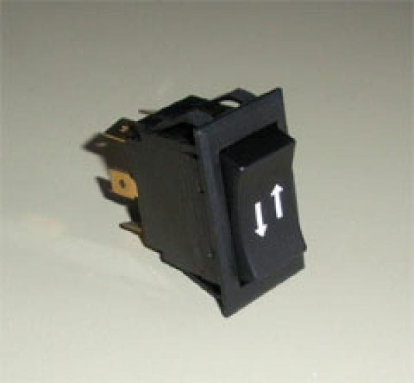 Dieser Wippschalter ist vermutlich ein TIGM51-6M-BL-NBL aus der „Tippette“-Serie von Carling Technologies, der zusätlich mit eingravierten Pfeilsymbolen versehen wurde. Es ist ein Zweipoliger Schalter, so dass am zweiten Pol die Rückfahrleuchte separat geschaltet werden kann und entsprechend der ursprüngliche Mikroschalter entfällt.