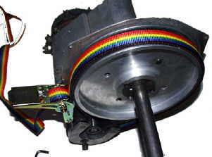 * Man benötigt dazu eine Schraubzwinge. Man hält nun die Spannrolle an den Motor und drückt sie an den Riemen. Die Schraubzwinge kommt mit dem runden Kopf auf den Rücken der Spannrolle, den Arm der Schraubzwinge stützt sich auf der Spannrolle ab. Zwischen Spannrolle und Schraubzwinge muß aber unbedingt eine Polsterung z.B. ein dicker Lappen, damit die Spannrolle nicht beschädigt wird!