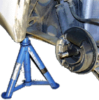 Das Fahrzeug stützt man mit zwei Böcken vorne ab. Theoretisch geht das auch mit einem Bock, jedoch habe ich das Fahrzeug von diesem schon versehentlich runter geworfen - das wird zu wacklig.