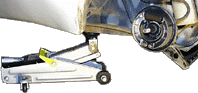 Den Wagenheber setzt man unter dem Fahrzeugboden ca. unter dem vorderen Sitzende an. An dieser Stelle ist die Bodenwanne durch die Abtrennung zwischen Elektronik und Fußraum verstärkt. Um den Kunststoff nicht zu verletzen, muß man ein Holzbrett o.ä. als Schutz dazwischenlegen. (30x30x2cm oder grösser, dann ist die Gewichtsverteilung sicher kein Problem)