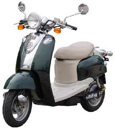45 km/h | 66 km (ECE 47) Reichweite | Bleibatterie | Gleichstrom-Radnabenantrieb mit bis zu 95 % Wirkungsgrad | Taiwan 2002 | Preis 2.395€