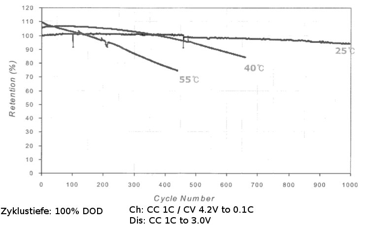 Nachfolgend reale Messdaten von Akkus (Jahr 2010) zur Alterungseigenschaft hinsichtlich der Temperatur. Hinweise auf den Hersteller und die Zelle aus fairnisgründen entfernt.