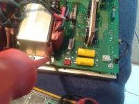 Nach dem Öffnen konnte man sofort den geplatzten Übertrager erkennen. Im Veraufe der weiteren Fehlersuche stellte sich ein IRF 460 FET und 4 SMD Dioden als schadhaft heraus.