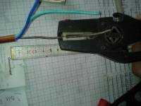 Als all erstes habe ich das vorhandene 1,5quadrat Kable großzügig abgemantelt, und dann geschaut wie Groß meine späteren Kühlschlaufen im Buchsengehäuse ausfallen können. An geeigneter stelle mit einen Abisolierer ein Teil der Litze die geklemmt werden soll, durch zurückschieben freigelegt – sowie auch das Ende, das auch nochmals geklemmt wird abisoliert.