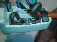 An den folgenden Bildern sieht man wie ich den Raum zwischen der Isolierung zur Kontaktverbesserung zwischen Klemmung und Kupferlitze (jetzt „Ader“) und Wärmeableitung verbessert habe.