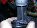 Wenn die Vierkant-Lenksäule ausgeschlagen und das Spiel zwischen diesen beiden Rohren zu groß ist, spürt man während der Geradeausfahrt starke Vibrationen. Diese lassen sich beseitigen, wenn man das Spiel sozusagen auffüllt.