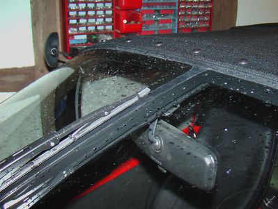 Für die Scheibenwaschanlage muß man schlußendlich noch den vorhandenen Schlauch durch einen längeren ersetzen und dann kann der Regen kommen - und plötzlich sieht man, was alles auf der Straße bei Regen los ist . . .