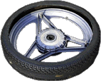 Das Reifenwechseln kann man in einer Werkstatt machen lassen oder auch selbst erledigen. Neue Reifen gibt's beim el Vertragshändler. Um die Reifen selbst zu wechseln braucht man Montierhebel o.ä. (wobei Fahrradmontierhebel meistens zu schwach sind), Seifenwasser oder Montagepaste - kein Silikon, dieses behält die Schmierfähigkeit - und einen Lappen oder Leder um die Montierhebel auf der Felge abzustützen (die Beschichtung der Felge platzt sonst ab). Das El hat Schlauchreifen, wobei die Schläuche im Falle eines Falles mit Fahrradflickzeug geflickt werden könnten. Beim Montieren der Reifen muß man sehr aufpassen, daß man den Schlauch nicht einklemmt. Warme Reifen sind flexiebler! Etwas Spüli o.ä. hilft auch bei der Montage. Ohne Maschinen artet daß manchmal schon in eine Schinderei aus (einige Flüche inbegriffen). - Der Motorradhändler bei mir verlangt für das Reifen montieren 15,-/Reifen.