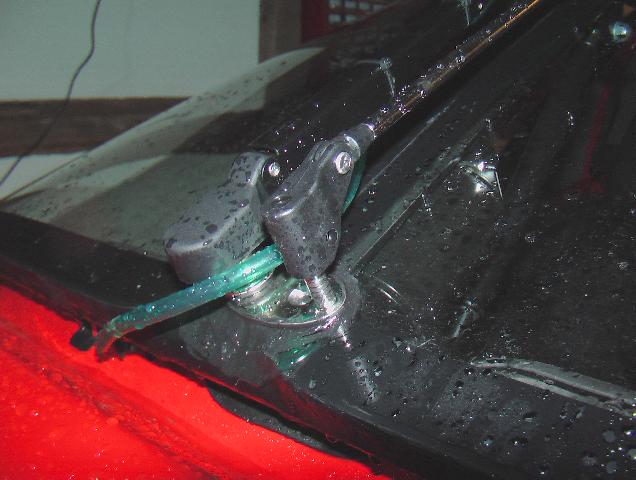 Für die Scheibenwaschanlage muß man schlußendlich noch den vorhandenen Schlauch durch einen längeren ersetzen und dann kann der Regen kommen - und plötzlich sieht man, was alles auf der Straße bei Regen los ist . . .