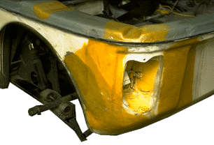 Das Fahrzeug war jedoch noch fahrfähig und konnte mit Glas- und Kevlarfaser wieder repariert werden.