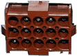 Auf der Diagnosebuchse im CityEl nach Ser. Nr. 2000 können alle wichtigen Informationen abgerufen werden. Bis Seriennummer 3006 war sie unter dem Armaturenbrett rechts, nach Seriennummer 3006 ist sie unter dem Sitz unter der schwarzen Gummikappe. Mit einer Lupe läßt sich die Pinbelegung lesen. (Ralf Wagner)