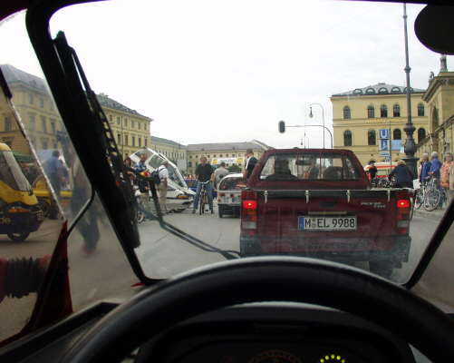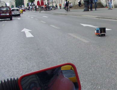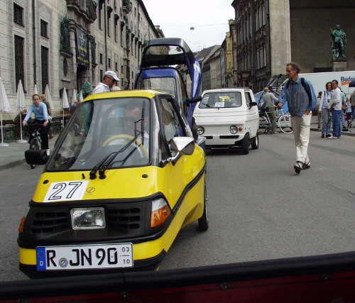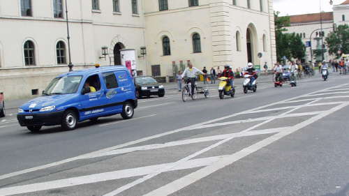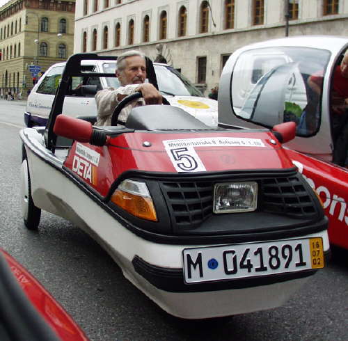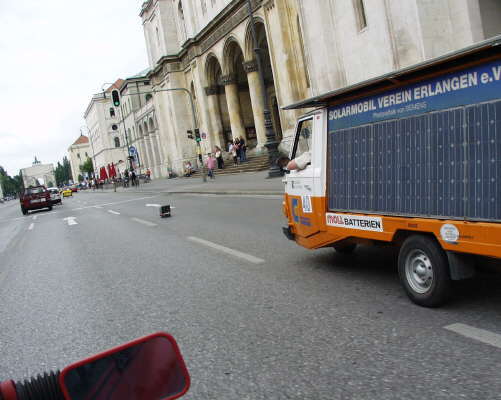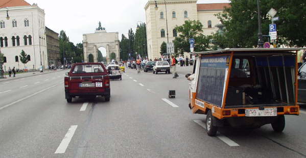 Die Erlanger haben Ihrem ersten Solarmobil ein Modellfahrzeug vorausgeschickt, das auch ganz munter mitfuhr. |